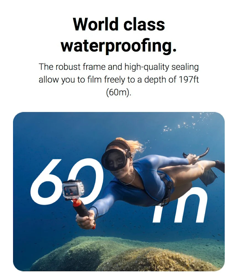 Waterproof protection for GO Ultra up to 197ft (60m).