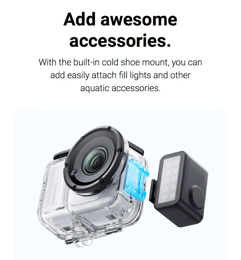 Take your underwater adventures further with the Insta360 GO Ultra Dive Case, engineered for maximum protection and clarity. Whether you’re diving into coral reefs, snorkeling in crystal waters, or capturing thrilling water sports, this case ensures your Insta360 GO Ultra stays safe and performs at its best. Its precision-sealed design guarantees waterproofing up to 60 meters (196 feet), while the scratch-resistant lens keeps your footage clear and vibrant. With its standard 2-prong mount, you can easily attach it to a variety of mounts and accessories for versatile shooting angles. Rugged, reliable, and purpose-built, this dive case unlocks new depths for your creativity.