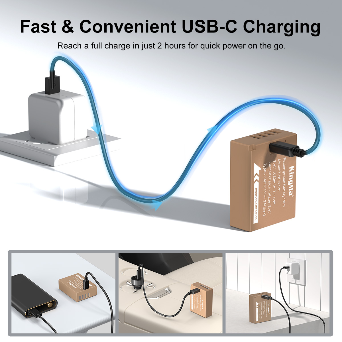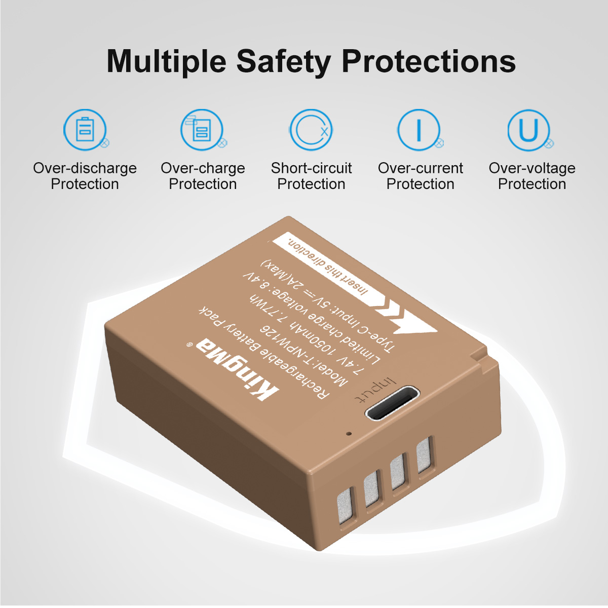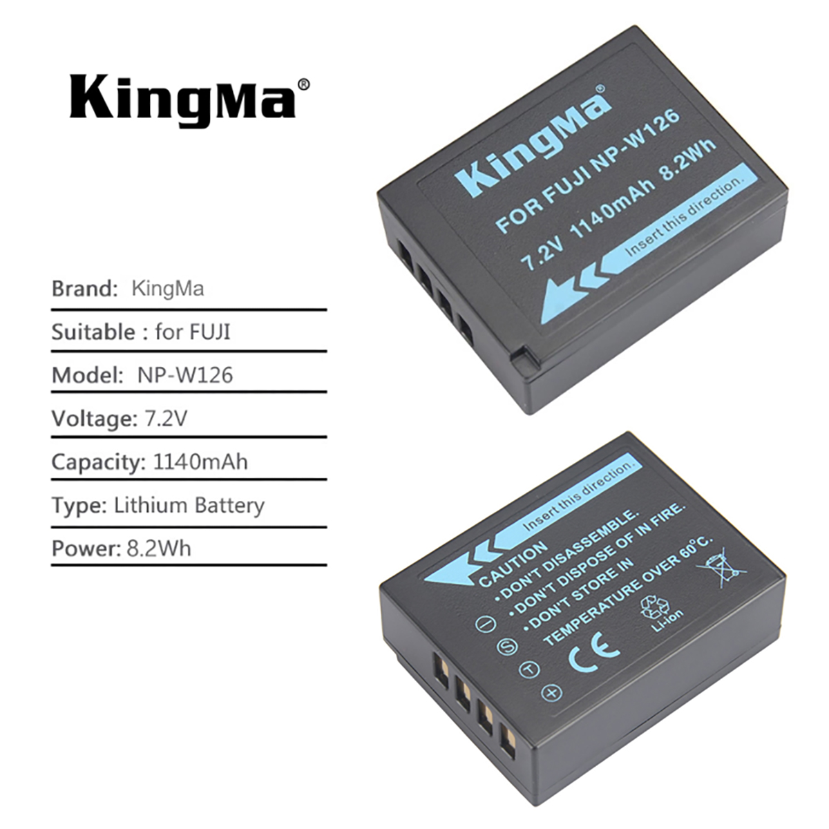 NP-W126: 7.2V 1140mAh NP-W126 with Type-C Port: 7.4V 1050mAh The Battery 100% decoded and 100% Compatible with the Original Cameras and Chargers. Use Integrated microchip which can prevent the overcharge and over-discharge. No memory effect, can be charged or discharged at anytime. 1 Year Warranty.