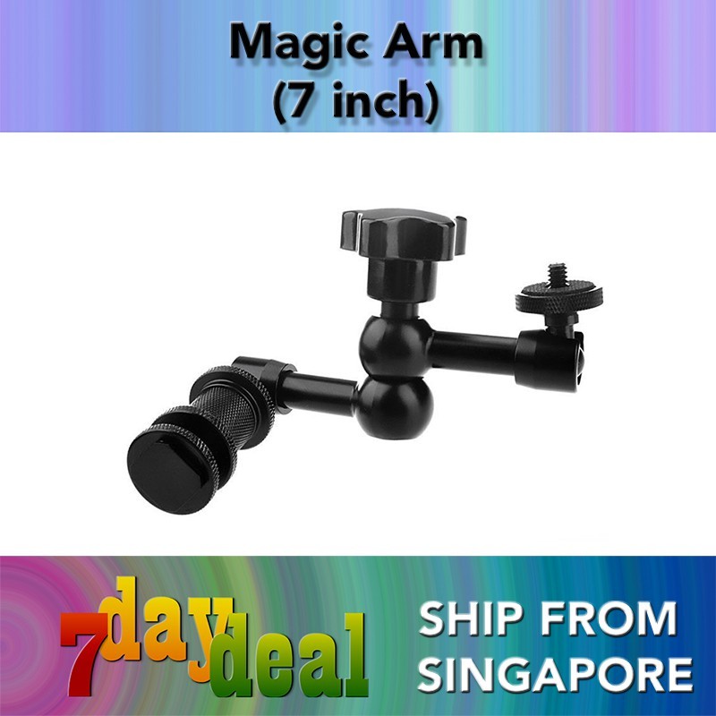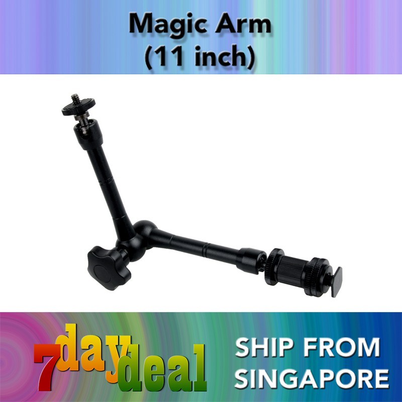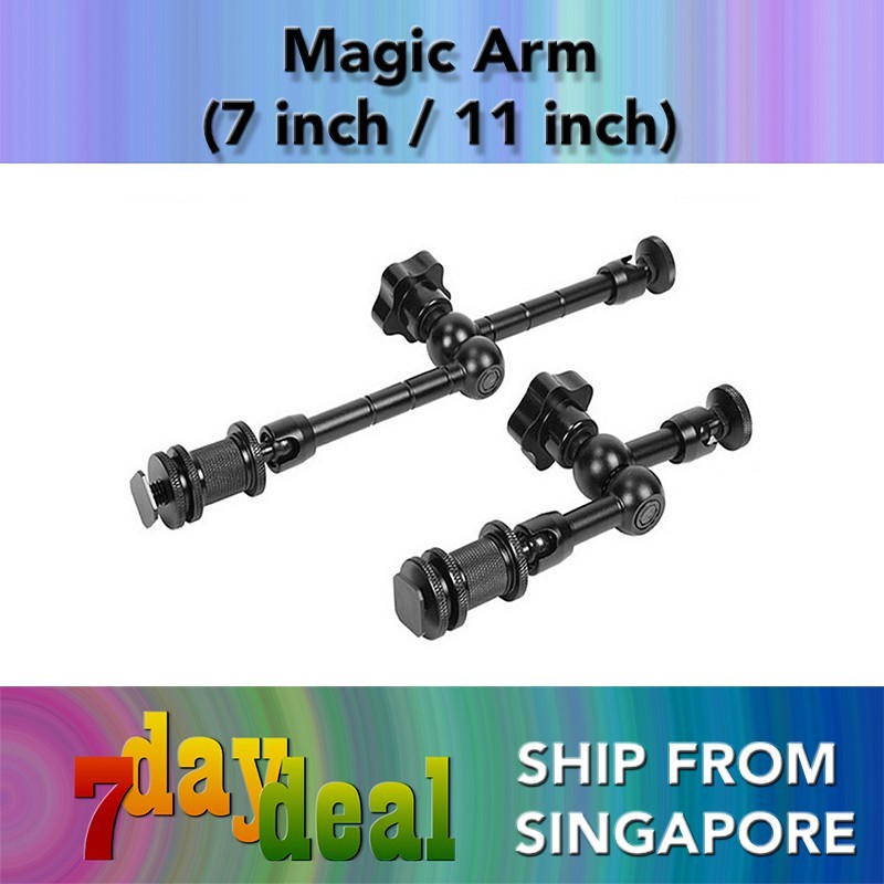 Mount LED light, flash or Field Monitor on to your Stabilizer, DSLR cage etc Large center locking knob to lock all movements 1/4" screw at one end to mount your device Articulating Arm with Friction Control Max. Load: up to 2kg Length: 7" or 11"