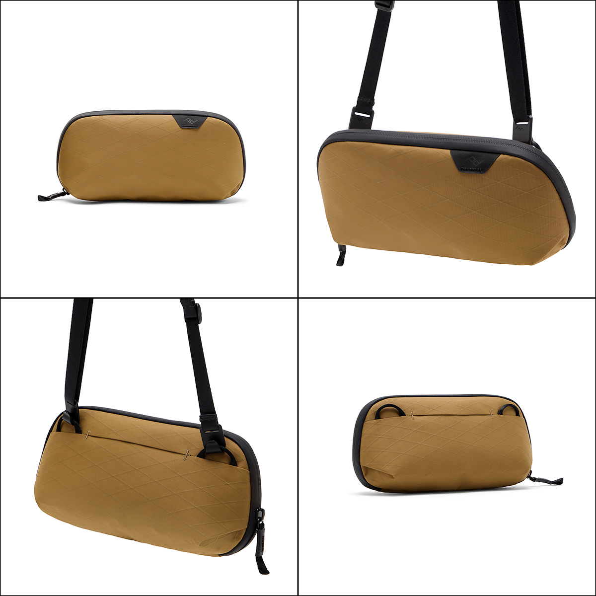 Bag opens extra-wide and sits perfectly upright for total visibility and access. External grab handle and corner pleats make it easy to pull the pouch out of tight spaces. 2 Cord Hook™ loops allow you to connect any PD camera strap or carry strap (sold separately) to convert the pouch into a sling bag.