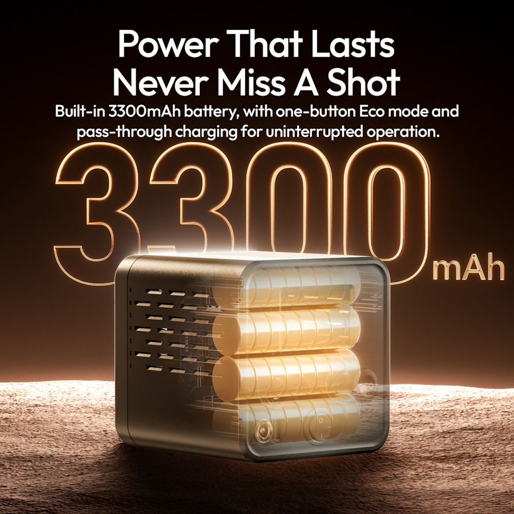 Powerful 60W Output Full RGB + Adjustable White and Warm Light Built-In Battery (3300mAh) with Dual Power Input Creative Lighting Effects: 20 scene simulation modes Mini Bowens Mount & 1/4″ Thread