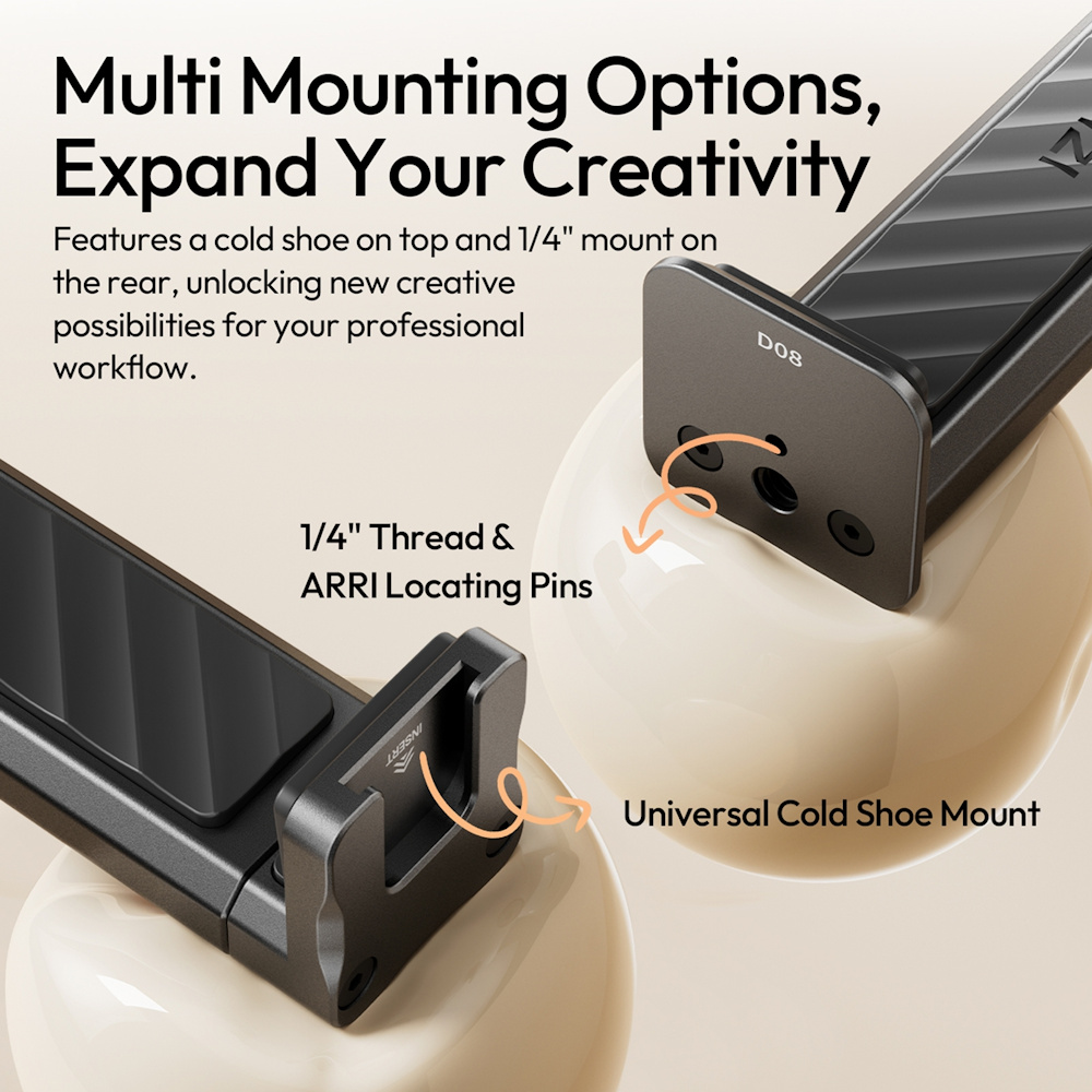 Built from precision CNC aluminum, this clamp feels robust yet lightweight, offering reliable durability without added bulk. Perfectly compatible with iPads and Android tablets from 4.7″ to 12.9″, it features a wide grip range and soft silicone pads that protect your device from scratches and slippage. The universal base ensures quick and stable mounting to tripods, gimbals, arms, or other support systems, while the additional cold shoe and 1/4″ accessory mounts let you expand your setup with lighting or audio gear for professional-level results.