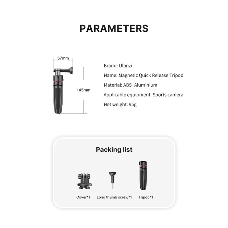 Ulanzi Go Quick II Magnetic Quick Release Mini Tripod For Action Cameras and GoPro Mounts (2964)
