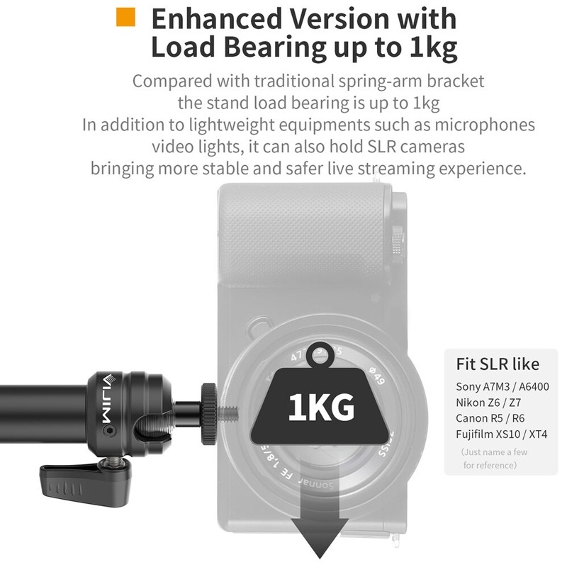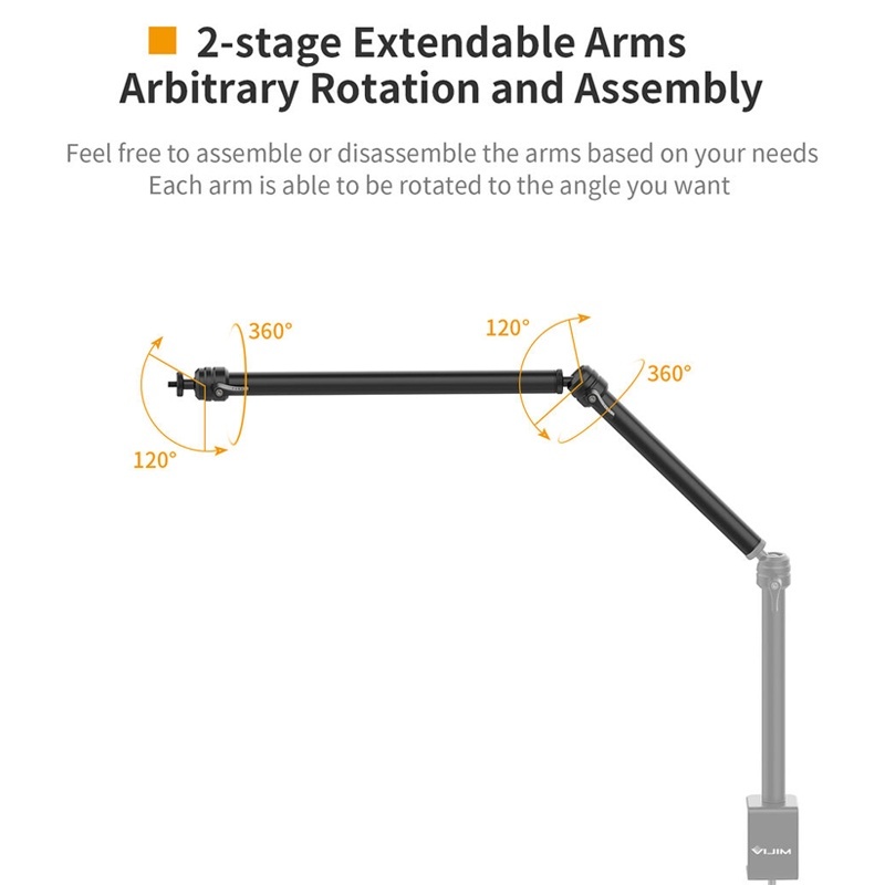 The VIJIM LS06 is a professional Live streaming arm that allows your to extend your desktop mounts by attaching it via the 1/4" screw thread. It can hold up to 1kg of payload and is made from aviation aluminum alloy processed by high-precision CNC and sprayed and anodized. Both are is detachable, giving you the freedom to change the length and use as you see fit!