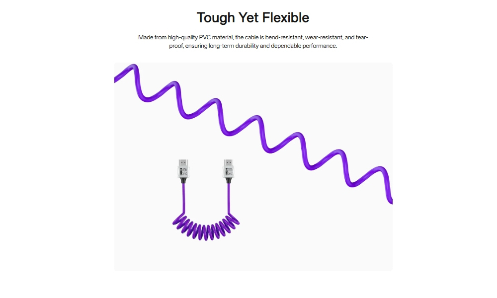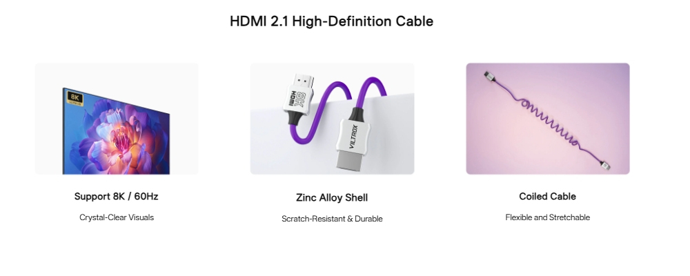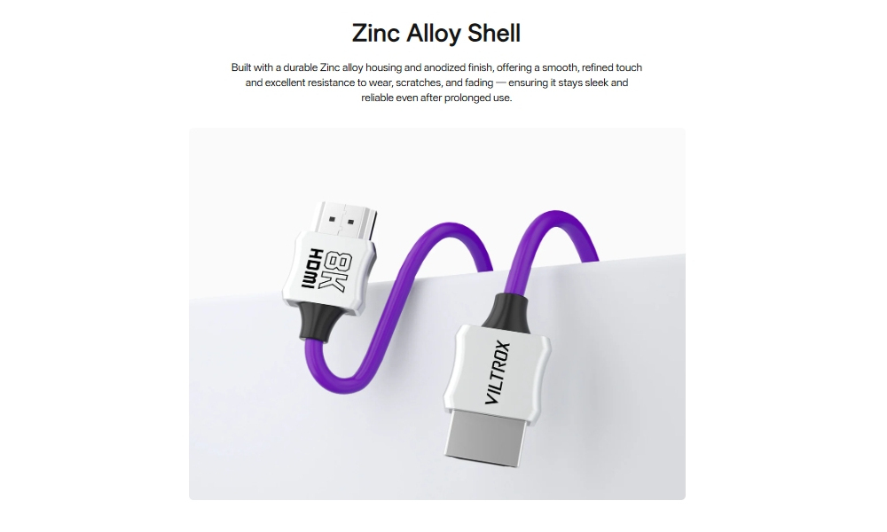 Built to last, the cable’s PVC jacket resists kinking, wear, and tear, while the outer shell maintains a sleek, premium finish. Whether you're on a shoot, in the studio, or building a high-performance workstation, the Viltrox 8K HDMI Cable is your reliable link for the highest-quality video transmission.