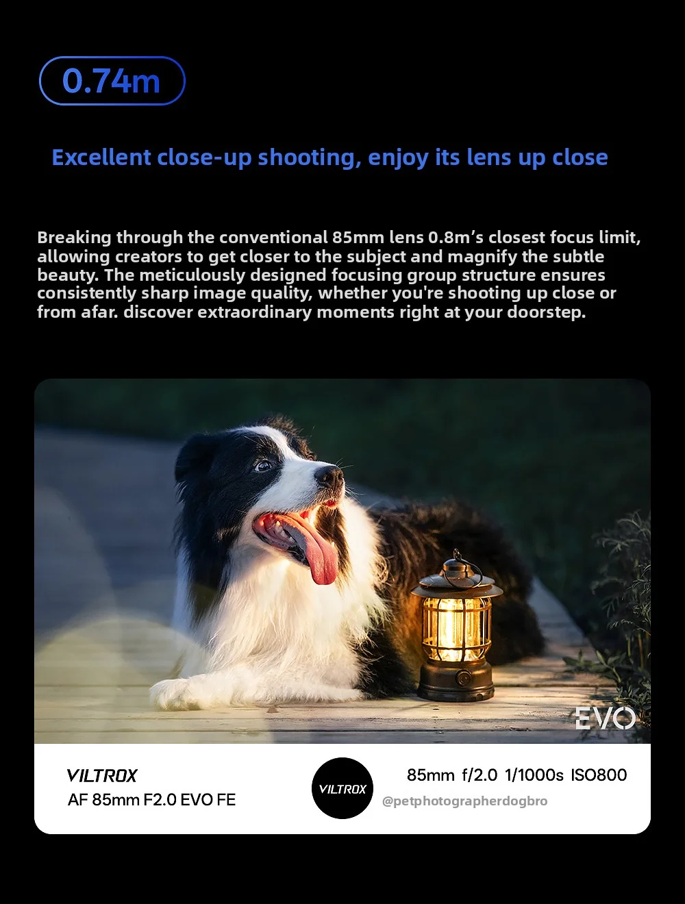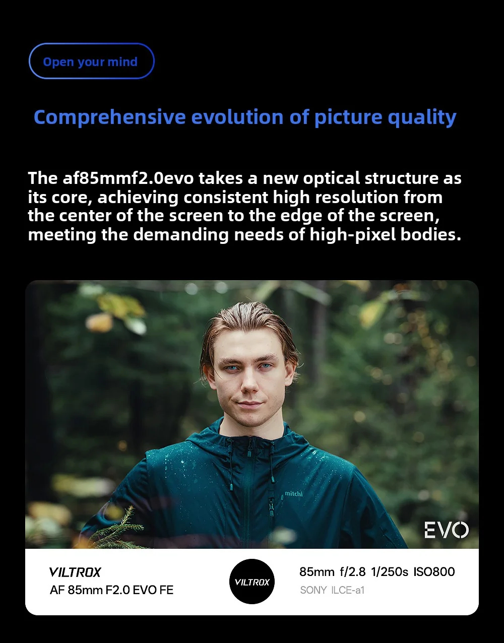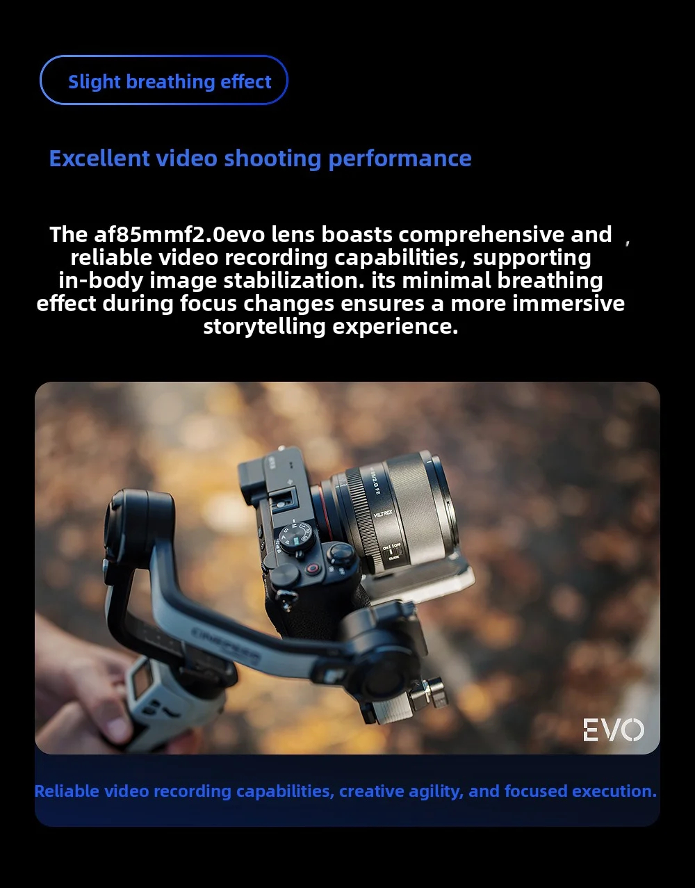 Viltrox AF 85mm f/2 EVO FE is a fast portrait-length prime lens designed for full frame mirrorless cameras. Its focal length and wide f/2 aperture make it ideal for capturing flattering portraits with natural perspective and smooth subject separation. Built with durable materials, the lens features a precision aluminum alloy mount and supports both fast autofocus and manual focus override for full creative control. Its optical design and advanced coatings deliver sharp, high-contrast images while resisting dust, water, and smudges.