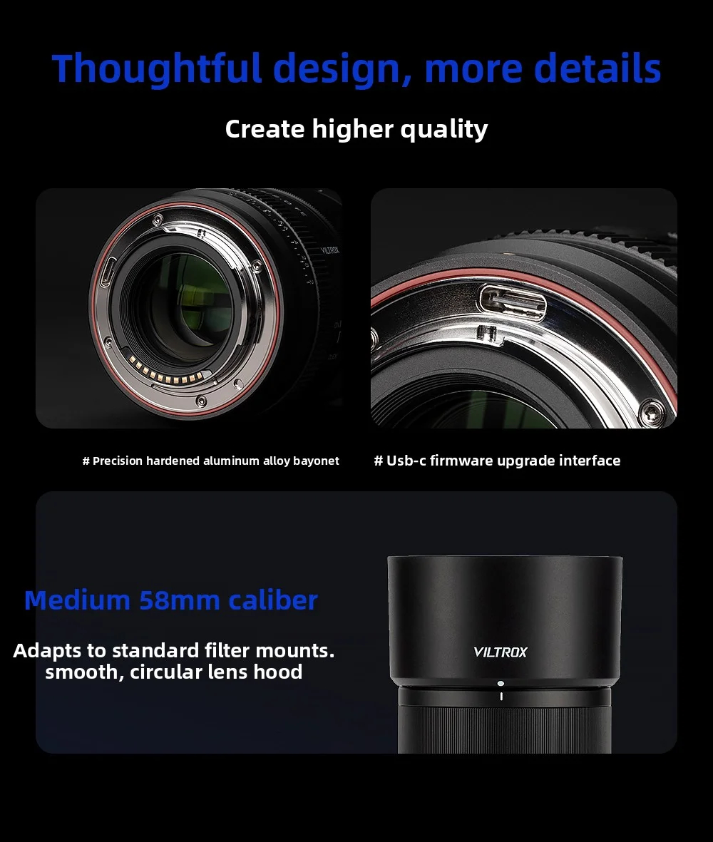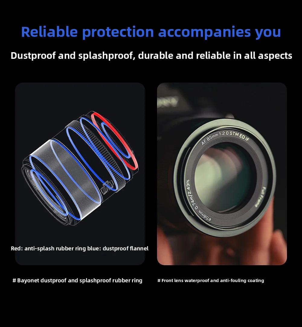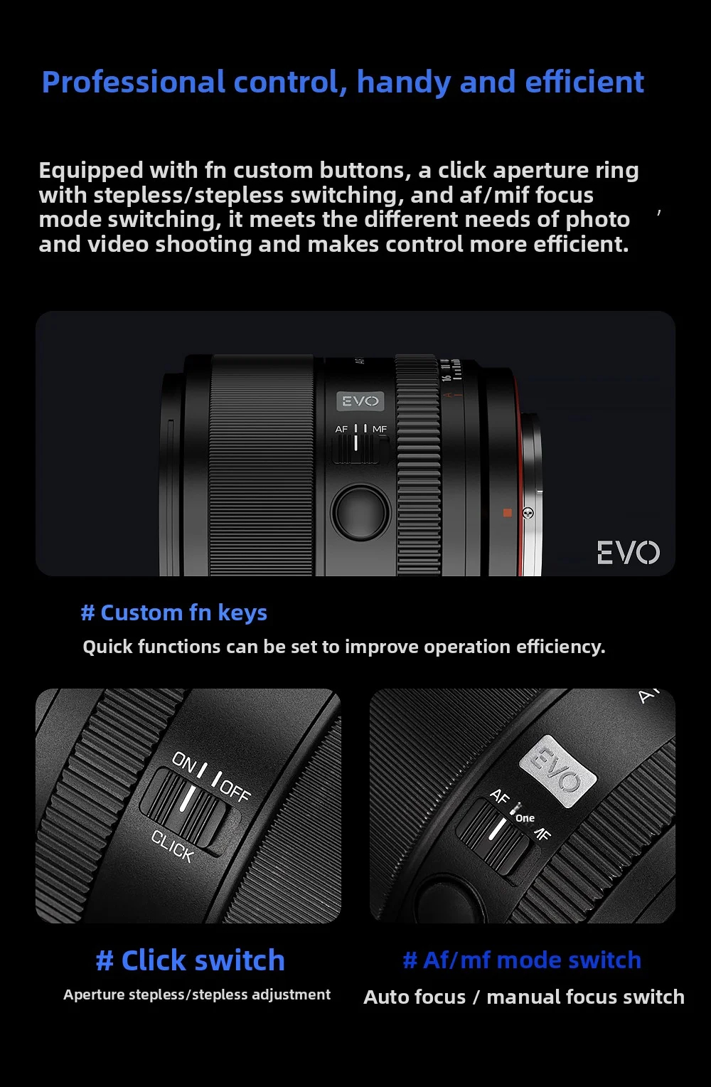 Viltrox AF 85mm f/2 EVO FE is a fast portrait-length prime lens designed for full frame mirrorless cameras. Its focal length and wide f/2 aperture make it ideal for capturing flattering portraits with natural perspective and smooth subject separation. Built with durable materials, the lens features a precision aluminum alloy mount and supports both fast autofocus and manual focus override for full creative control. Its optical design and advanced coatings deliver sharp, high-contrast images while resisting dust, water, and smudges.