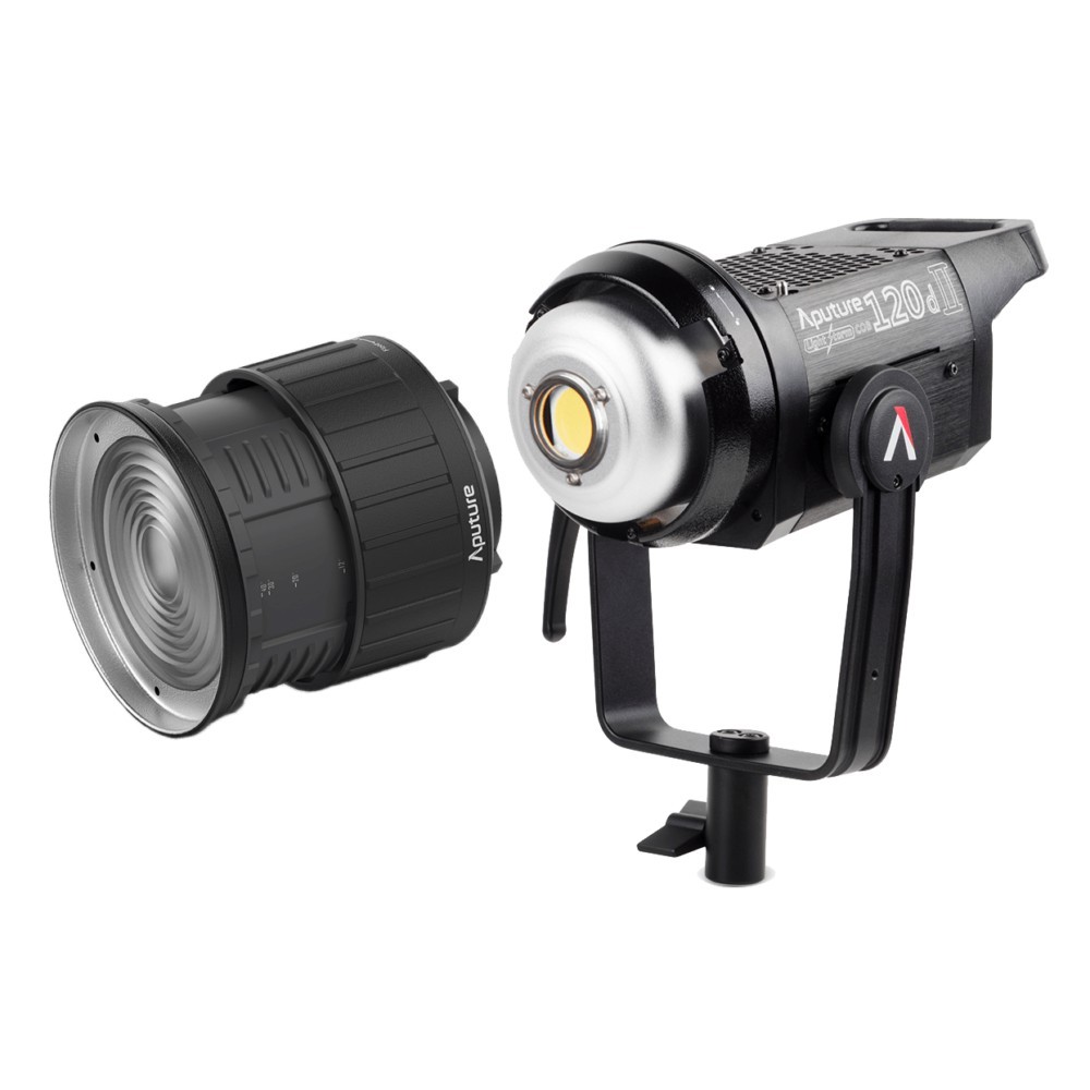 Boasting 25% more brightness than its predecessor, DMX control, and a redesigned handbrake-locking yoke, the Aputure Light Storm LS C120D II Daylight LED Light is a chip-on-board (COB) fixture with a 5500K color temperature. It consumes a negligible 180W of power while outputting 135,000 lux, equivalent to a 1000W hot light at a distance of 1.6' with an optional Fresnel. In addition to power efficiency, the fixture also features a high CRI/TLCI rating of 96/97, an indicator of precise rendering of color.