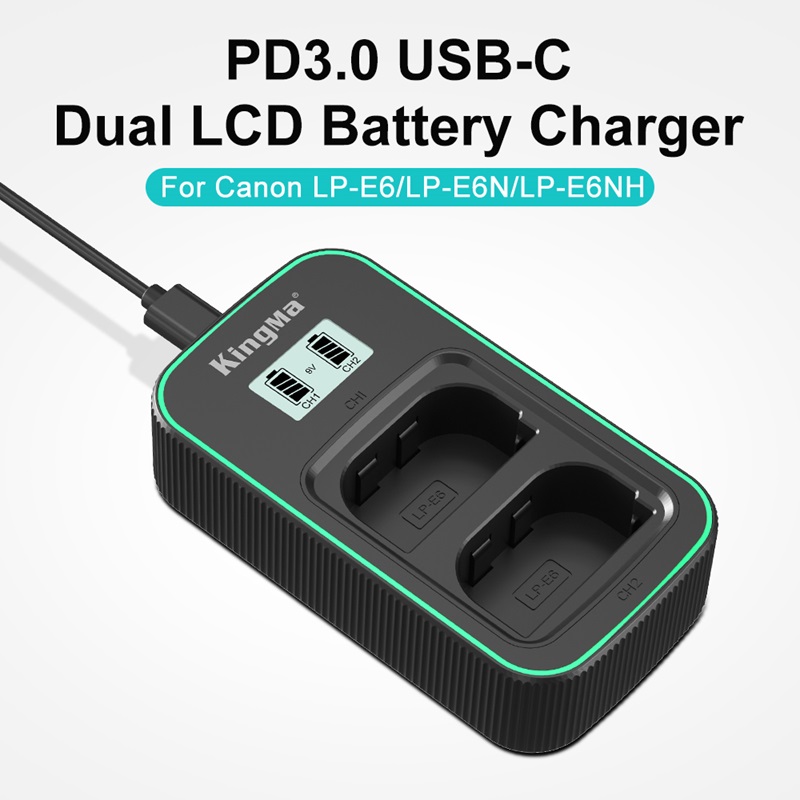 1 x KingMa LP-E6 LCD Dual Slot USB Fast Charger (PD3.0 9V/2A)