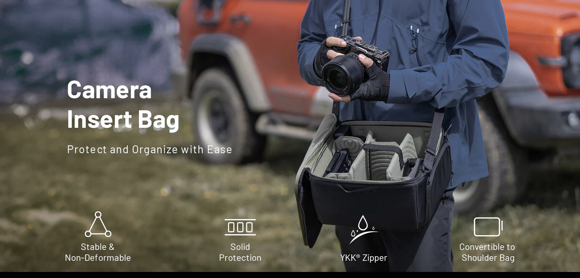 Organize & Protect Camera Kit Solid Frame Structure High-Density Foam Side Horn Buckle YKK Zippers Splash-Resistant Treatment Convertible Shoulder Bag