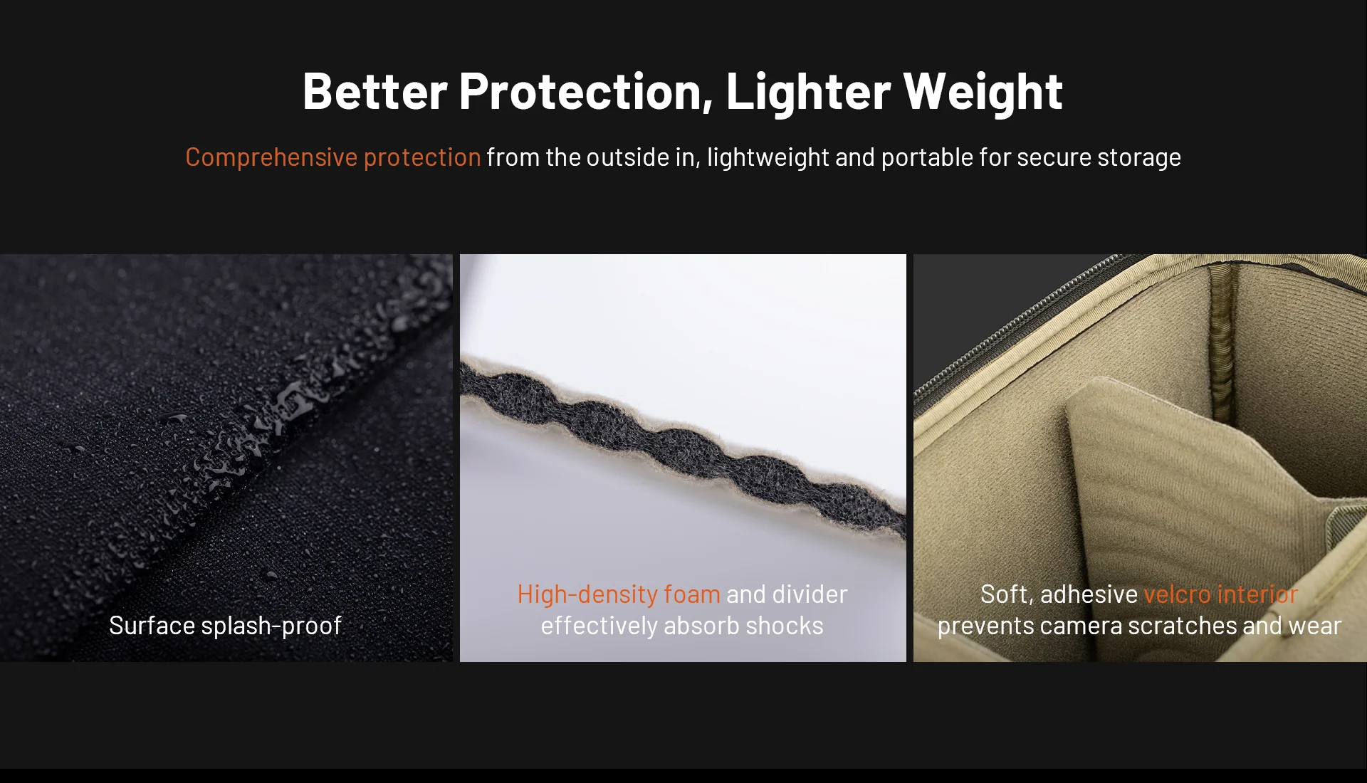 Lightweight design with high-density foam for the bag body and dividers offers enhanced protection while reducing the overall weight.