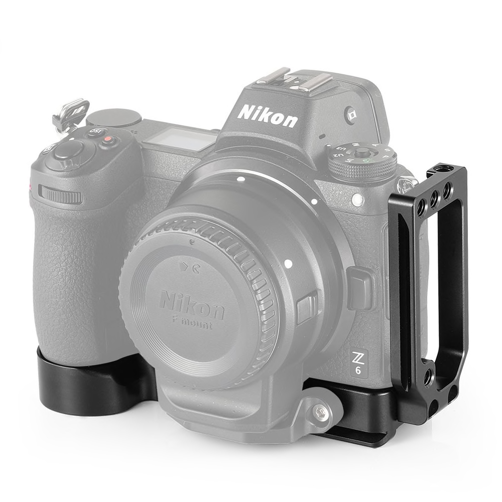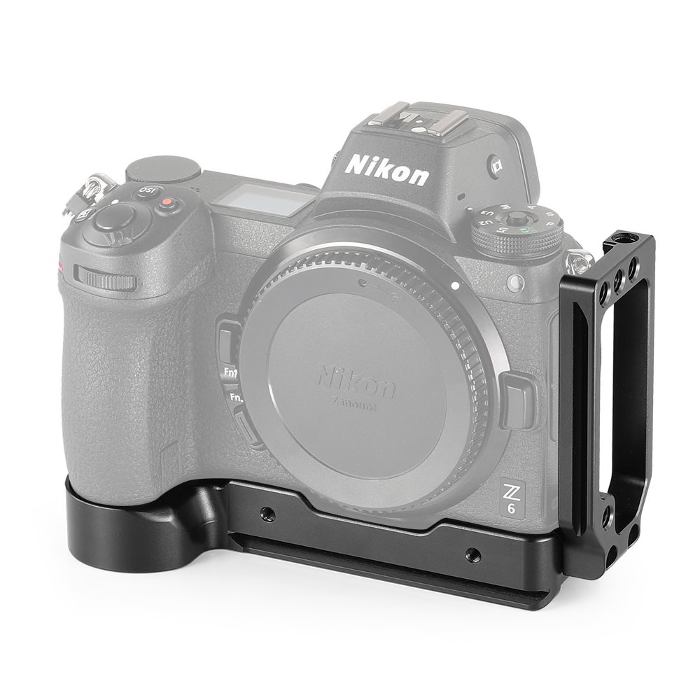 Modular designed for Nikon Z6 and Nikon Z7 Camera. Arca-Type compatible dovetail plate with center marks on both axis. Add 16.5mm height based on the original handgrip for pinky support. Extendable side plate allows for tethering or cable release. Compatible with Peak Design strap. Features three 1/4”-20 threaded holes on the side plate for accessory attachment. Built-in Allen wrench on the bottom.