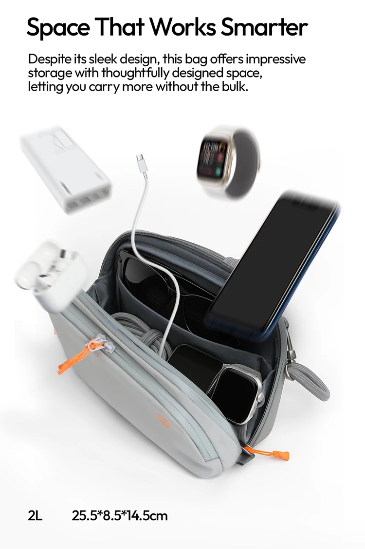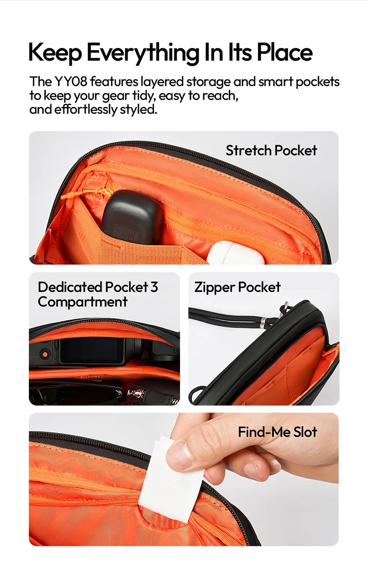 Ulanzi YY08 TechLite Sling Bag 2L is made for every moment. Whether it is a causal stroll or a business trip. The YY08 is your go-to companion-effortlessly carry your essentials. Despite its sleek design, this bag offer impressive storage with thoughtfully designed space, letting you carry more without the bulk. The YY08 features layered storage and smart pockets to keep your gear tidy, easy to reach, and effortlessly styled.